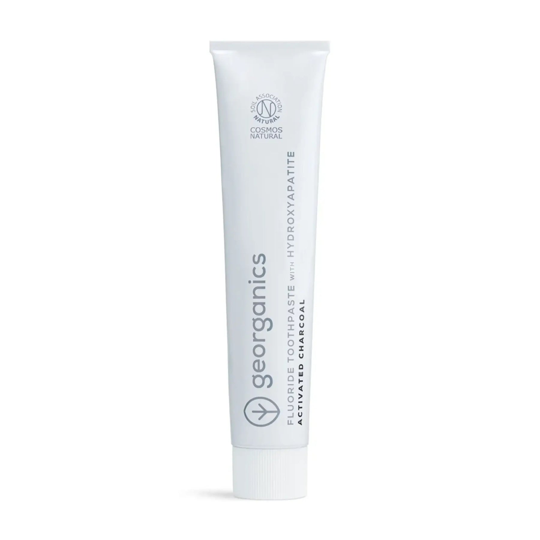 The Georganics Hydroxyapatite Toothpaste in Activated Charcoal takes everything that makes the Georganics formula stand out — 100% naturally derived ingredients, dentist-approved formulation, Cosmos Natural certification, fully recyclable aluminium packaging — and adds activated charcoal for a deeper clean that gently lifts surface stains with every brush.